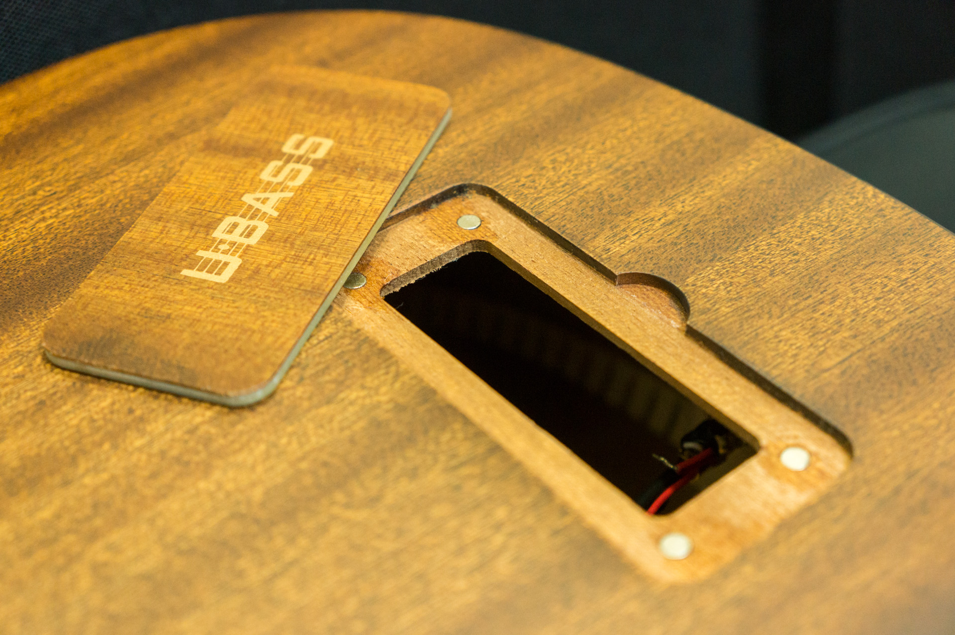 本体の裏には作業用の穴がある。蓋は磁石での固定なのですぐ外せる。