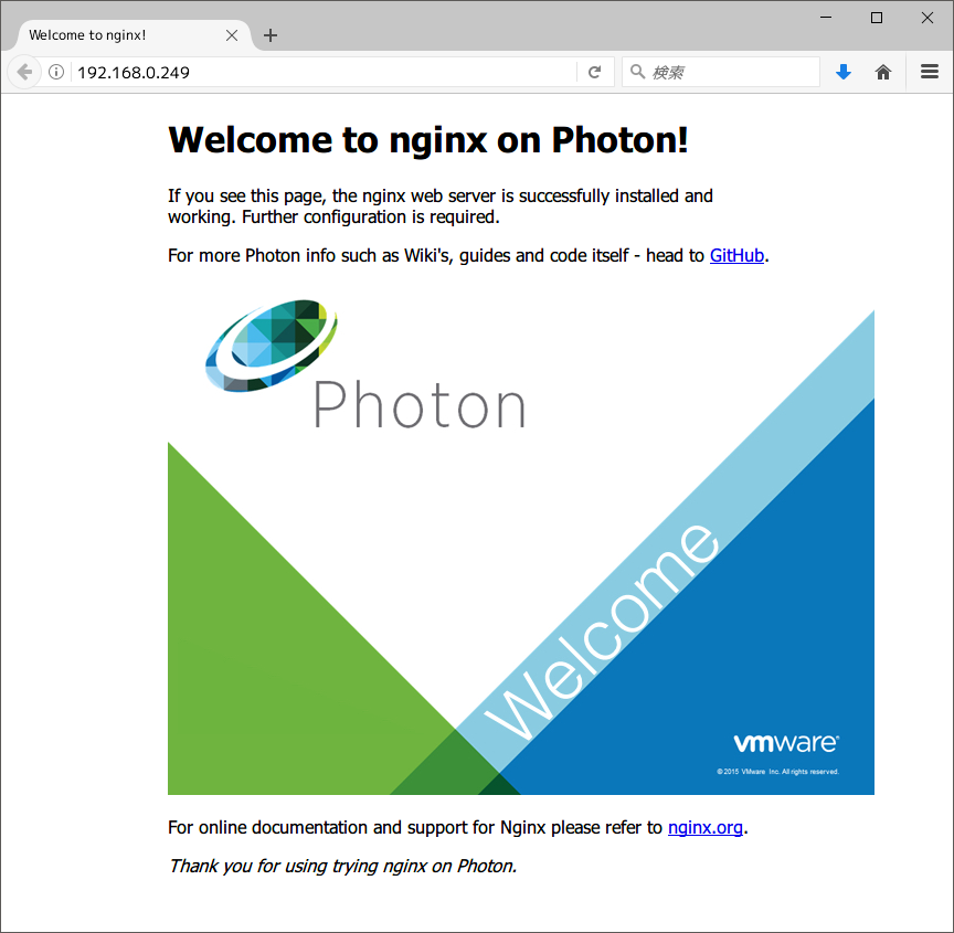 - VMware Photon Linux の Install ~ Docker コンテナ起動。