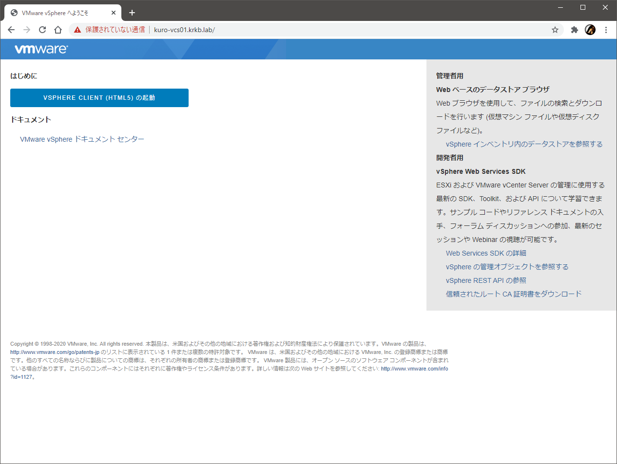 完了後、vSphere Client の URL にアクセスすると、確かに HTML5 版のみになっていました。
