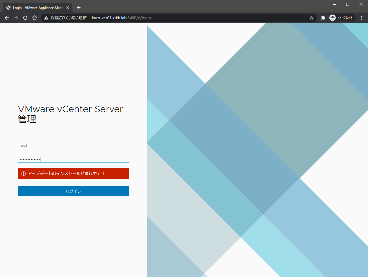 - 別セッションで VAMI にログインしようとすると『アップデートの進行中です』が表示されてログインできない