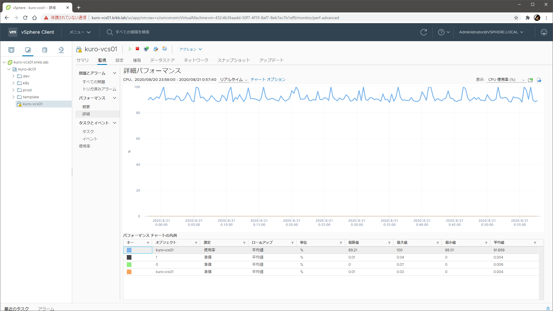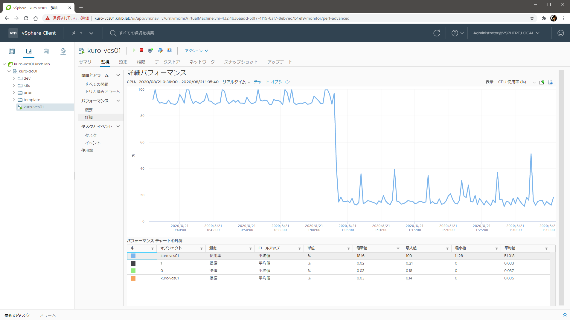 vCenter Server を 7.0.0c にしてしばらく放っておいたら、どうにも空冷ファンがいつもよりもうるさいままで、おかしいなあ、みたいな。見たらこうなっていました。