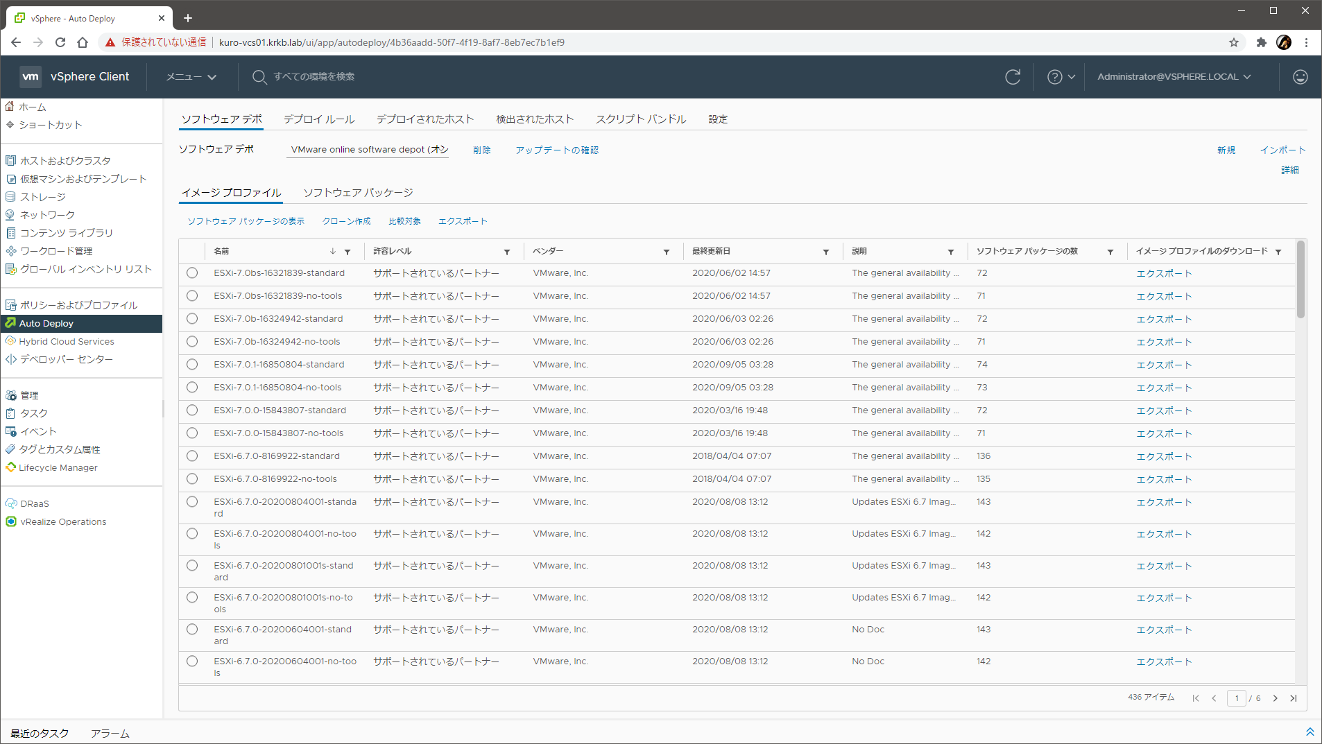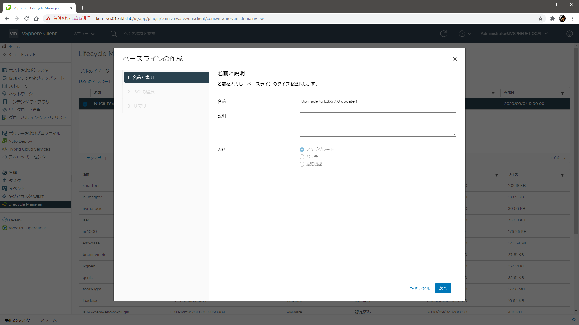 これまで、自宅の vSphere 7 環境の ESXi のバージョン管理には、vSphere 7 らしく vSphere Lifecycle Manager (vLCM) の イメージ管理 を使っていました(vLCM のイメージ管理を使って ESXi を 6.7 から 7.0 化してその後に 7.0b 化する様子は、別のエントリでも紹介 しています)。