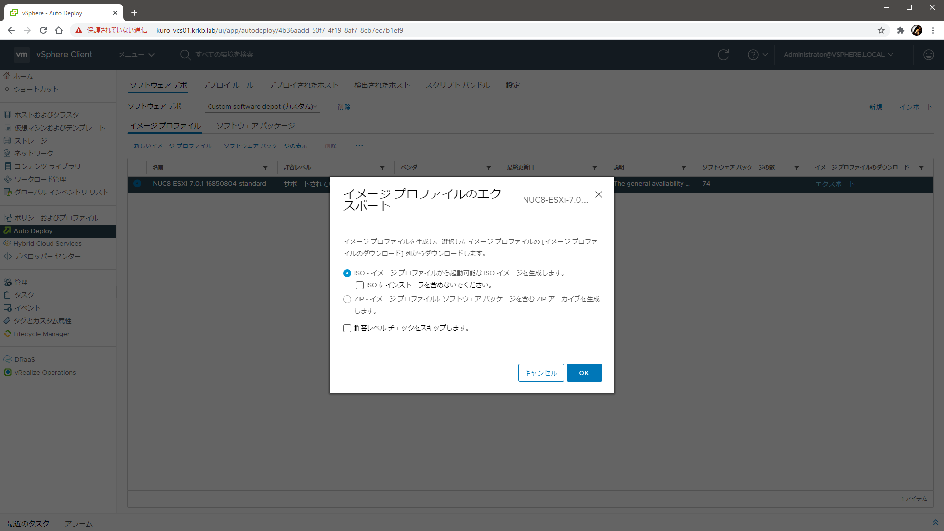 ここから、NUC 8 に合わせた 7.0 U1 のイメージを作成していきます。