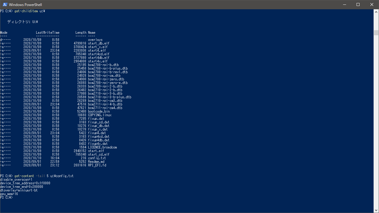 最終的にこんな感じになります。この例では、U:\ が SD カードです。
