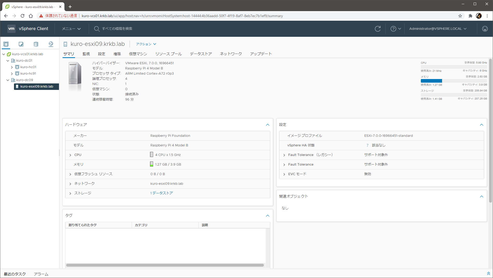 期待以上に素直に動きましたが、vCLS のエージェント VM が ARM だと動かないため、vCenter Server のバージョンが 7.0 update 1 の場合はクラスタに入れられなくなる(入れられはするがエラーが出続ける)点には注意が必要です。