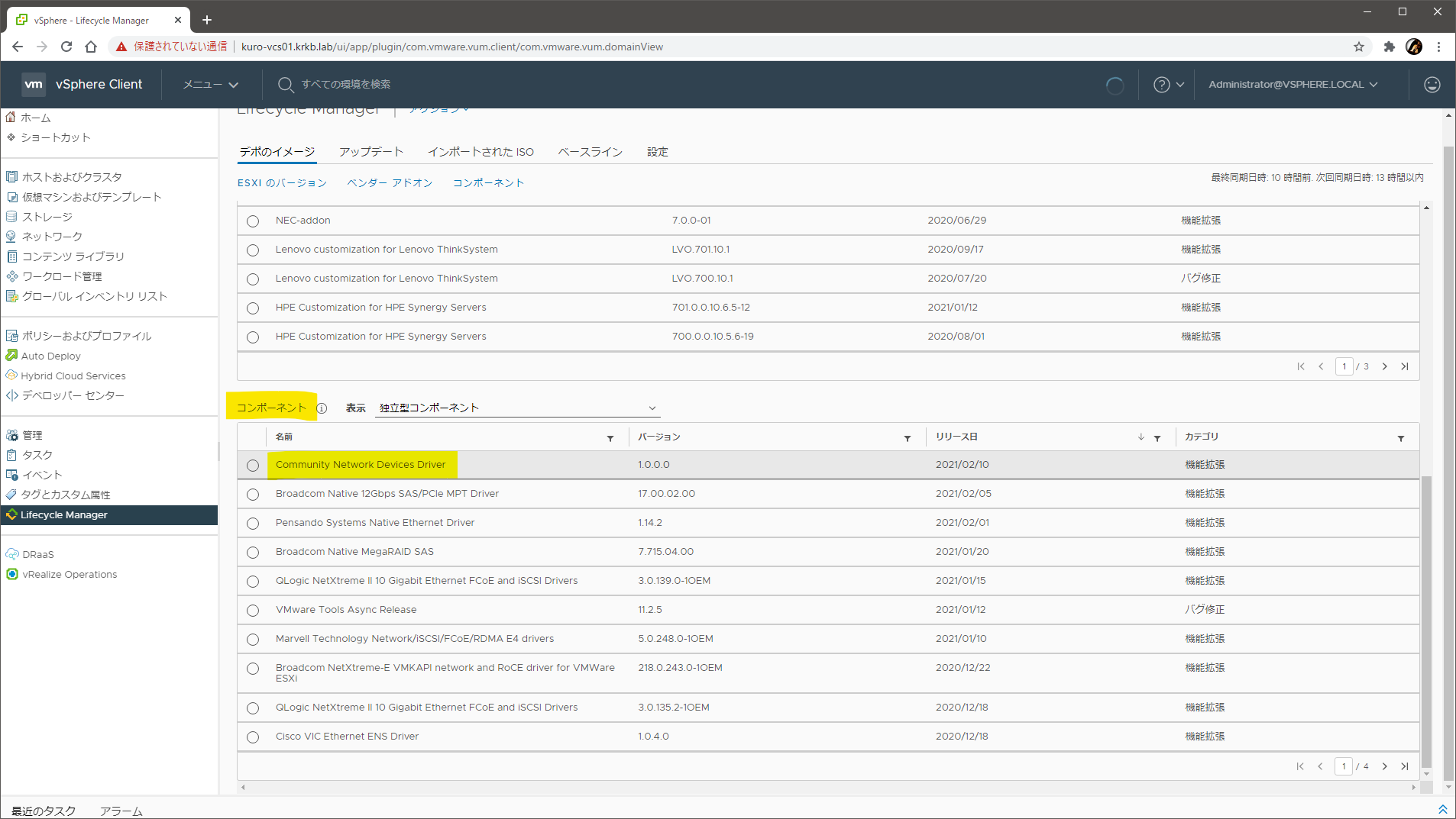 従来通り個別に導入したりカスタムイメージプロファイルへ組み込んだりできるだけでなく、vLCM にコンポーネントとしてインポートすれば、イメージ管理でも利用できます。