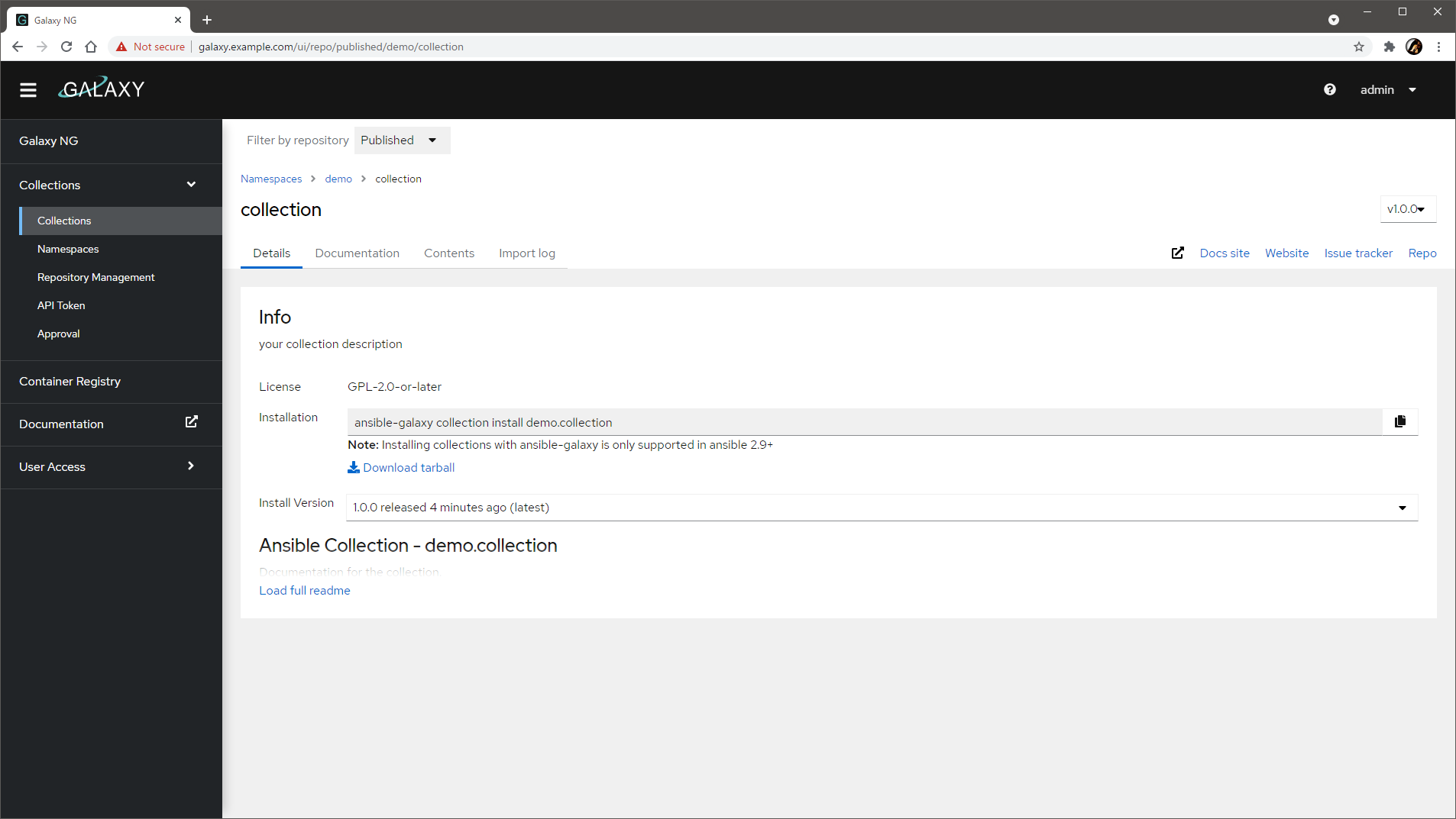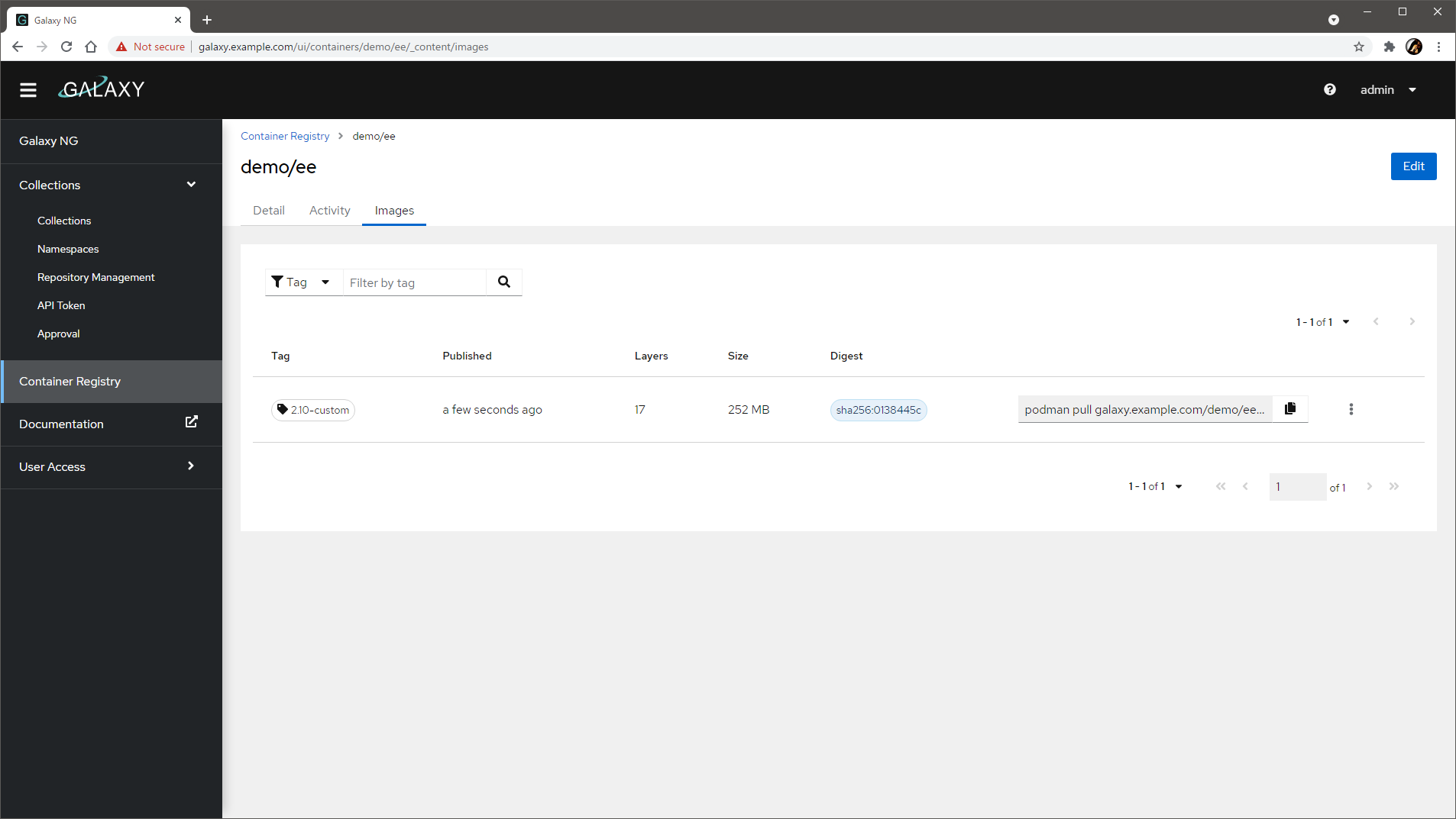 docker push galaxy.example.com/demo/ee:2.10-custom