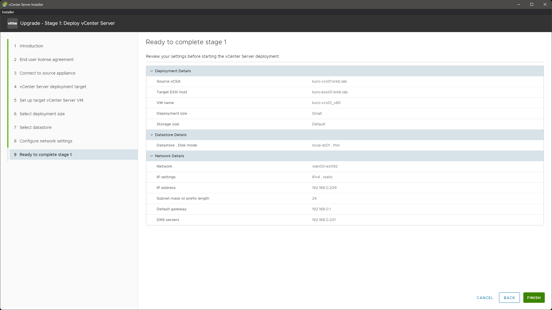 オンプレミスのちまっとした非 vSAN な環境だったこともあって、いつも通りな感覚であまり迷うこともなくサクサクと進められました。