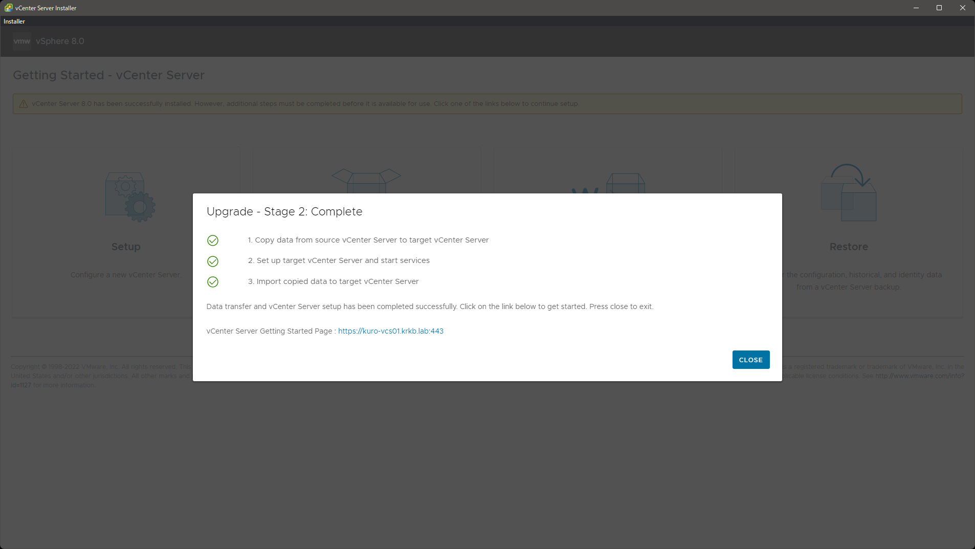 vSphere 8 が公開された ので、おうちラボをアップグレードしました。本エントリはその記録です。