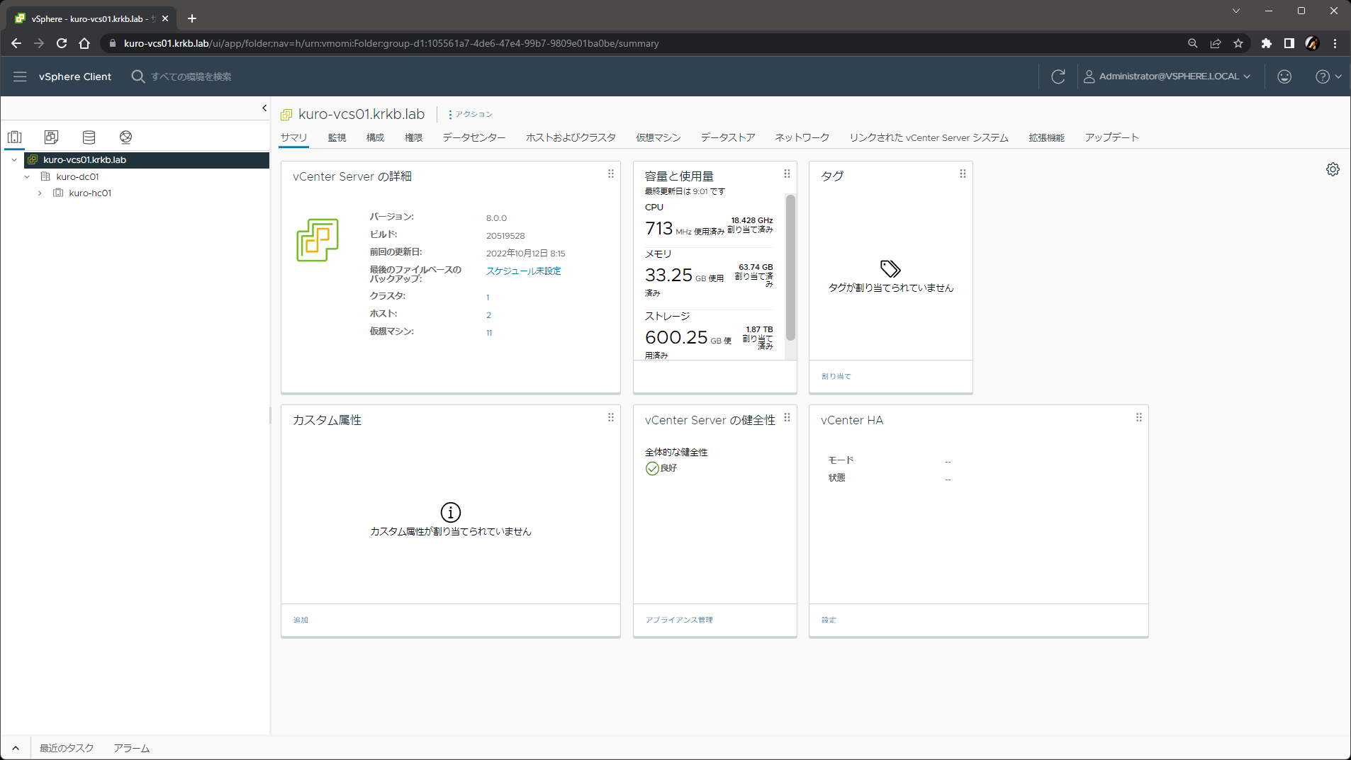 vCenter Server と ESXi をこれまでの 7.0 から最新の 8.0 にアップグレードしました。