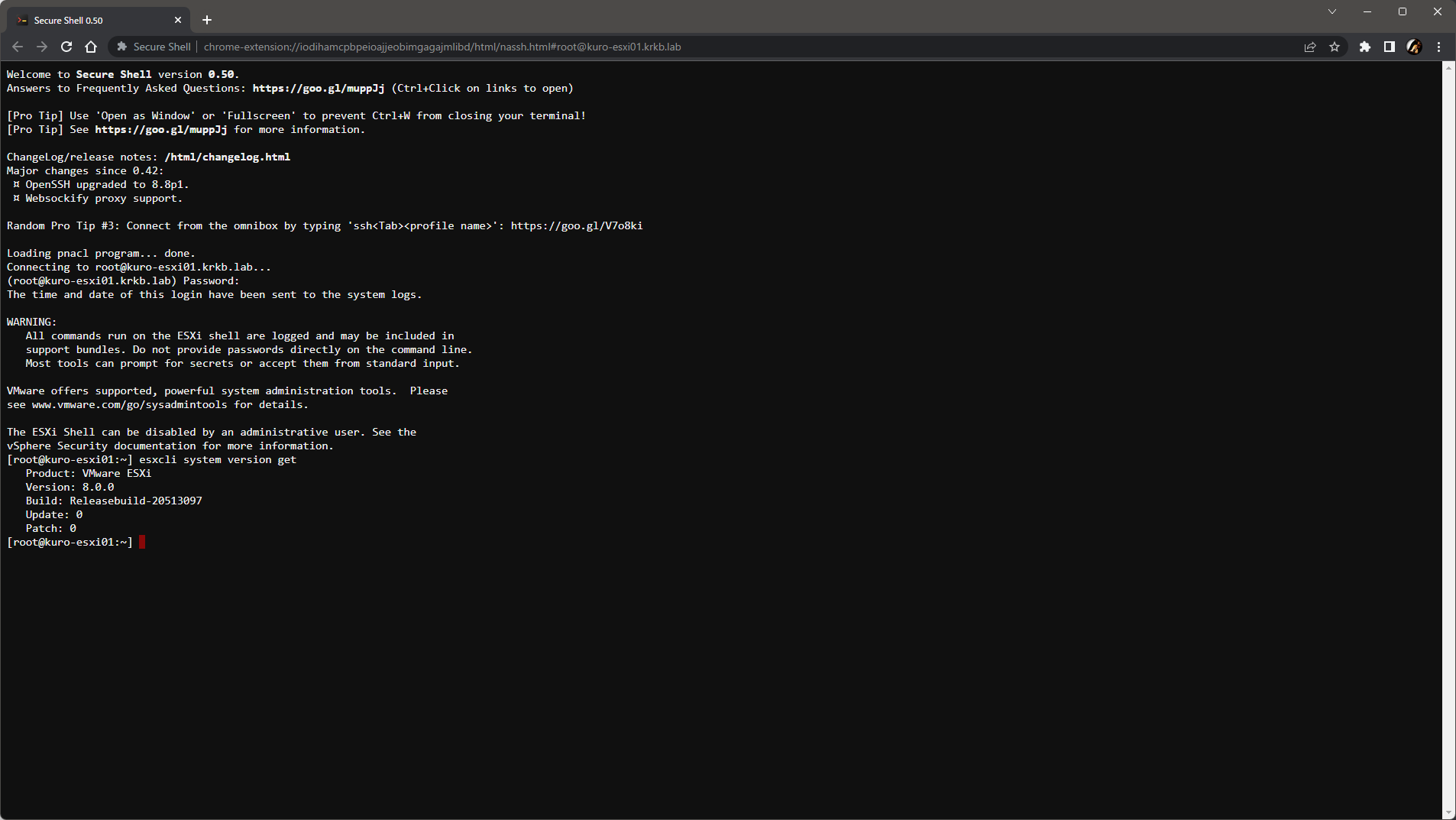 詳細はリリースノートに記載 がありますが、最新の仮想ハードウェアバージョンへの対応など順当な更新だけでなく、UI のテーマの変更のサポート、ESXi への SSH コンソール接続機能(Chrome への拡張機能のインストールが必要です)などが追加されています。