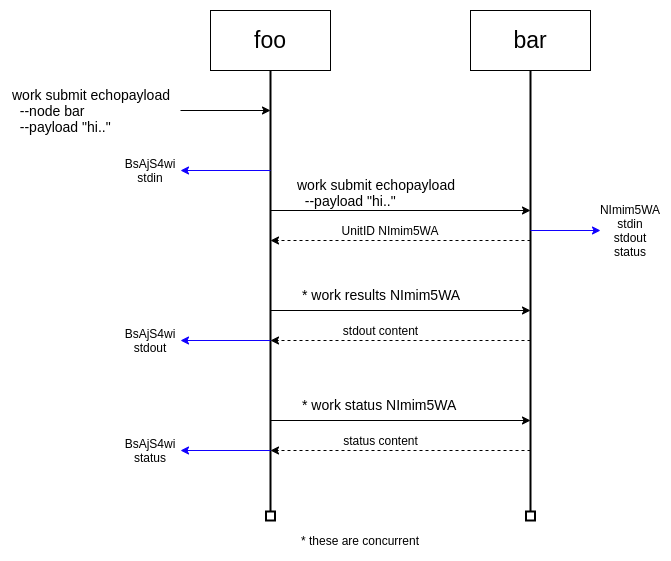 左上の Controller wc01 から右端の Executor ee01 への疎通を確認し、ワークを送っている例です。