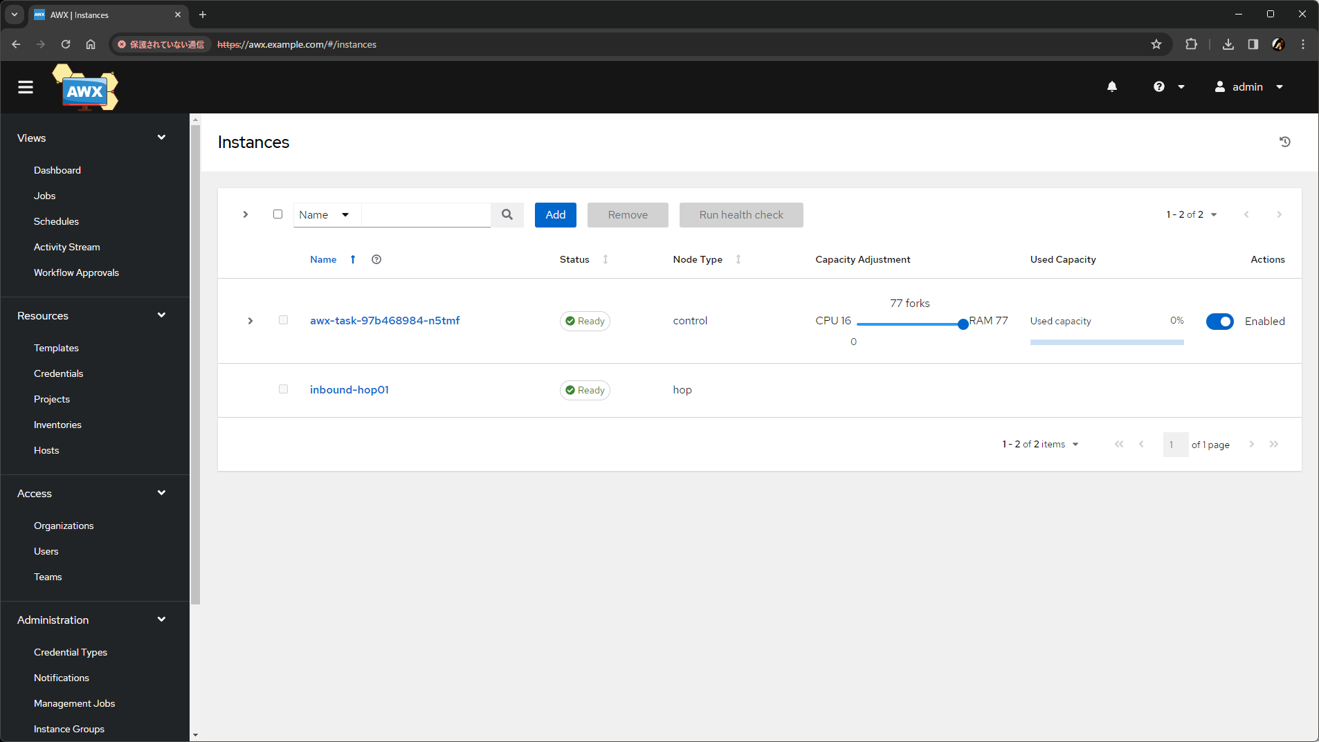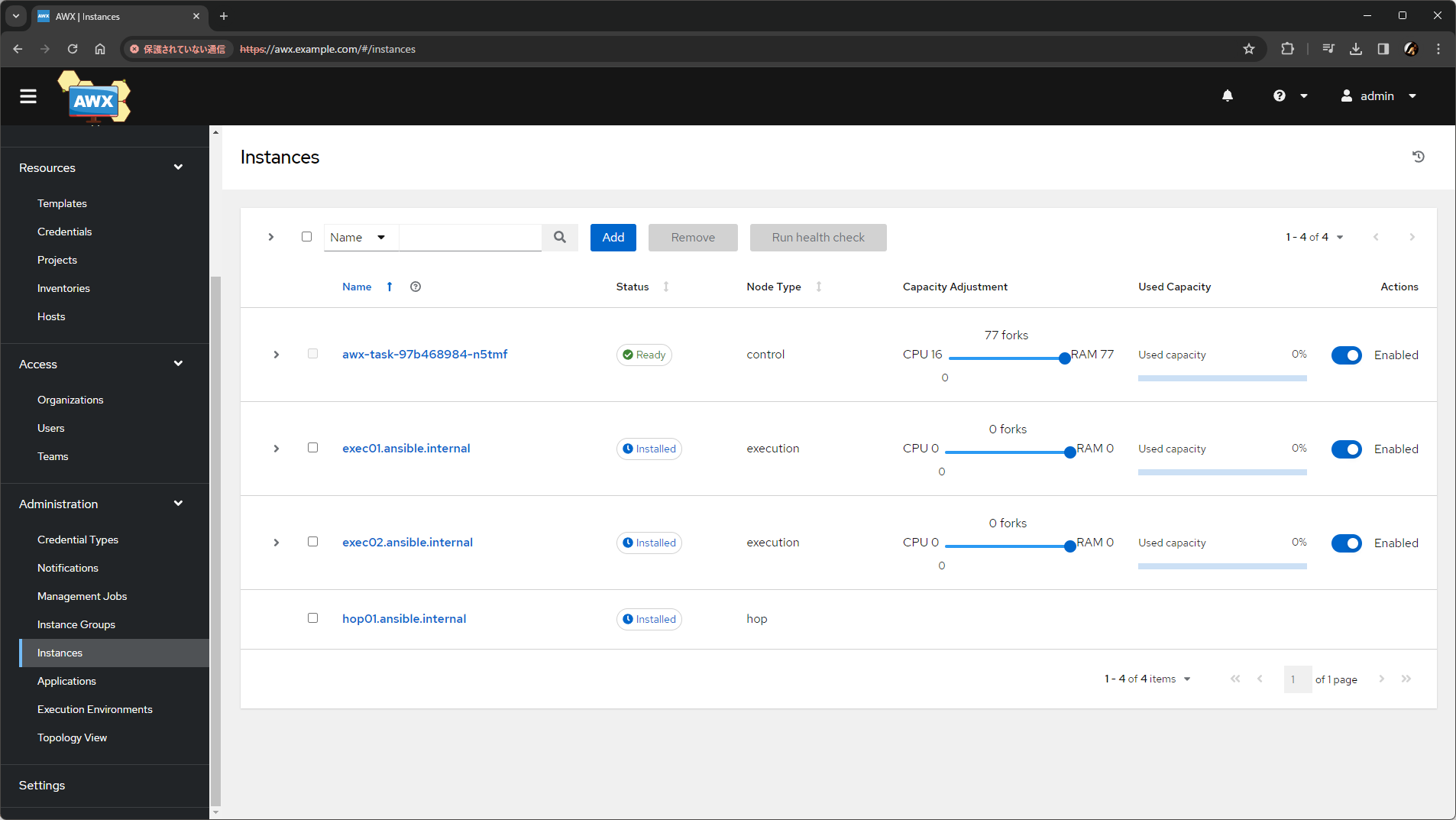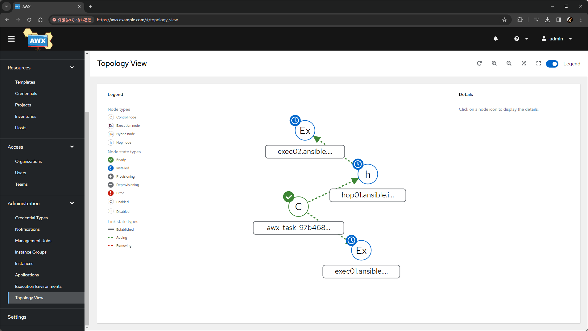 設計したすべてのノードを、AWX の Web UI からインスタンスとして追加します。