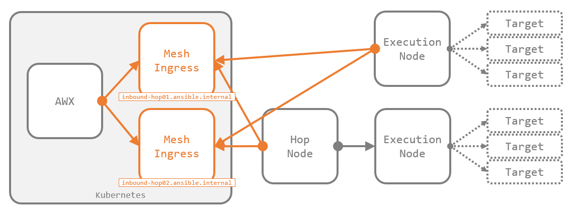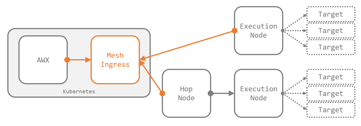 AWX の Automation Mesh を構成する機能として、過去に紹介した Execution Node に加えて、Hop Node と Mesh Ingress が最近のリリースで追加されました。