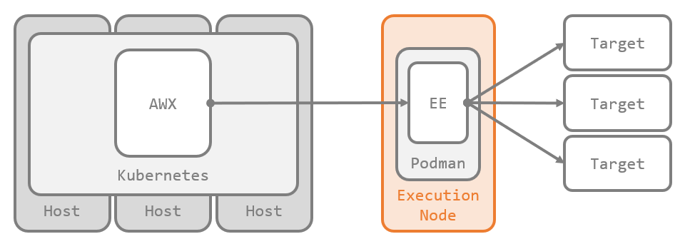 Execution Node は、Kubernetes クラスタの外に構成されたスタンドアロンのインスタンスで、AWX で起動されたジョブをクラスタ外のリモートホスト上で実行するために使用します。